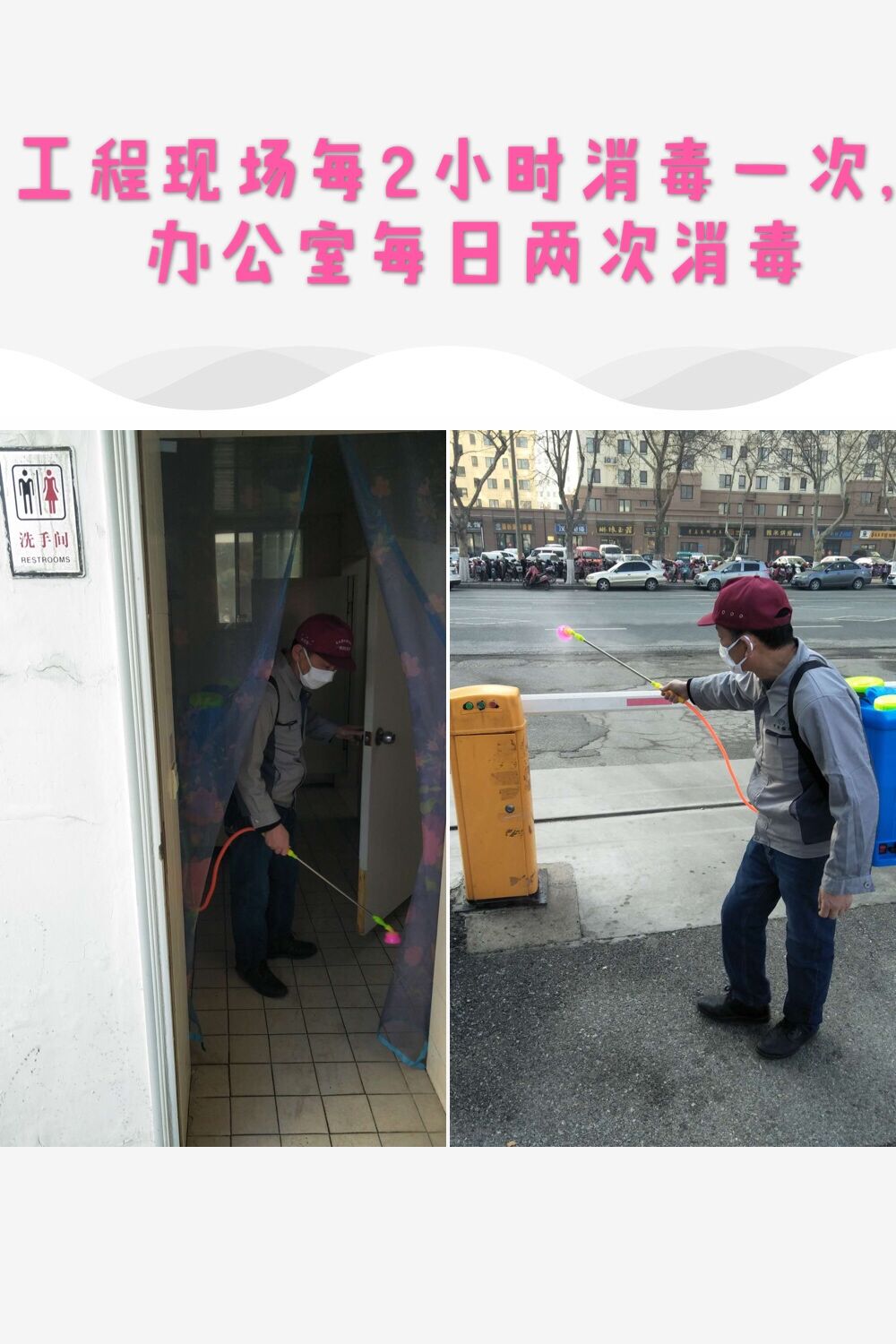 工程現(xiàn)場保證2小時(shí)消毒一次,行政辦公區(qū)域每天消毒兩次。口罩更換后統(tǒng)一丟棄至公司警衛(wèi)門前垃圾桶內(nèi)(標(biāo)記有臨時(shí)口罩回收處),回收封存銷毀。